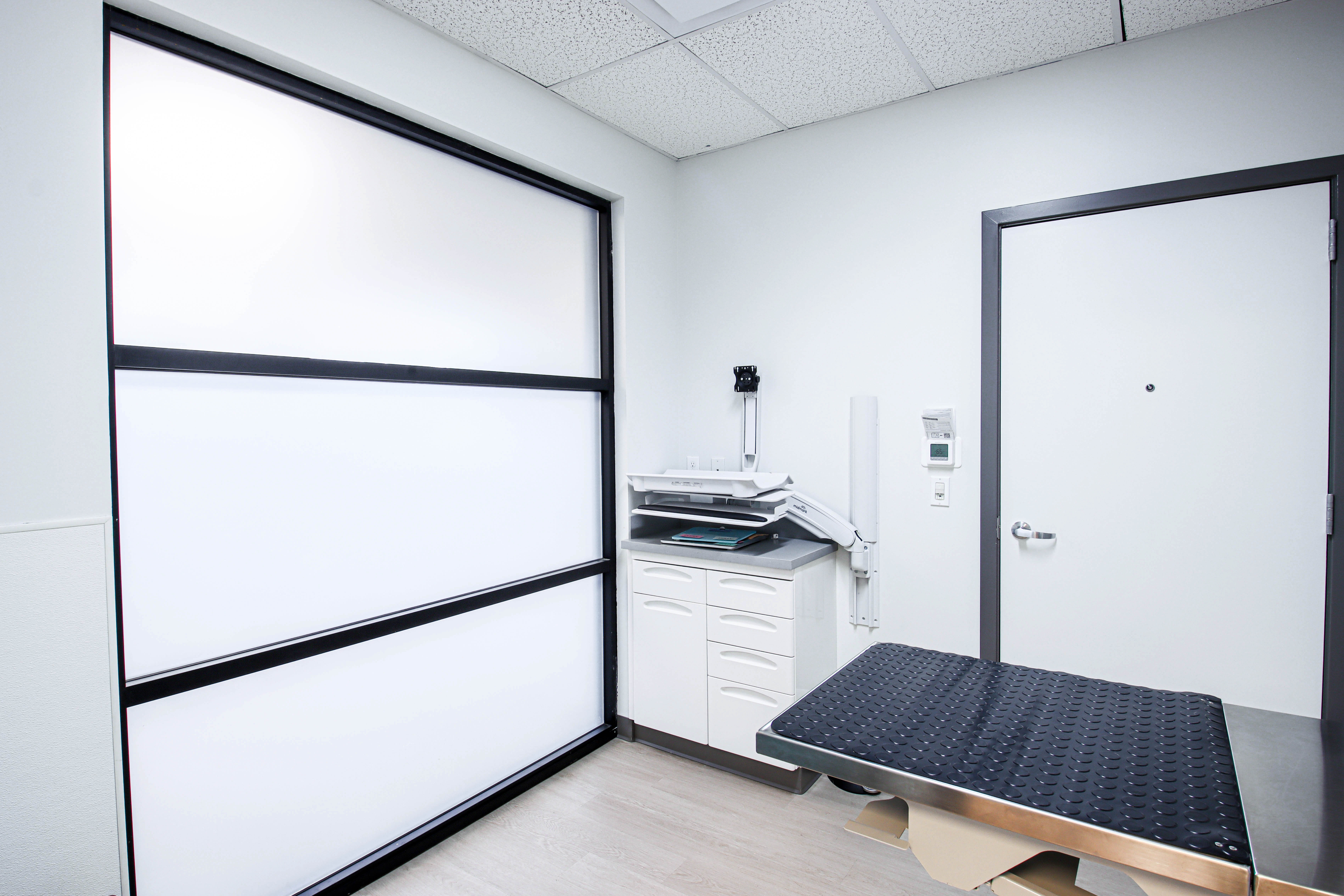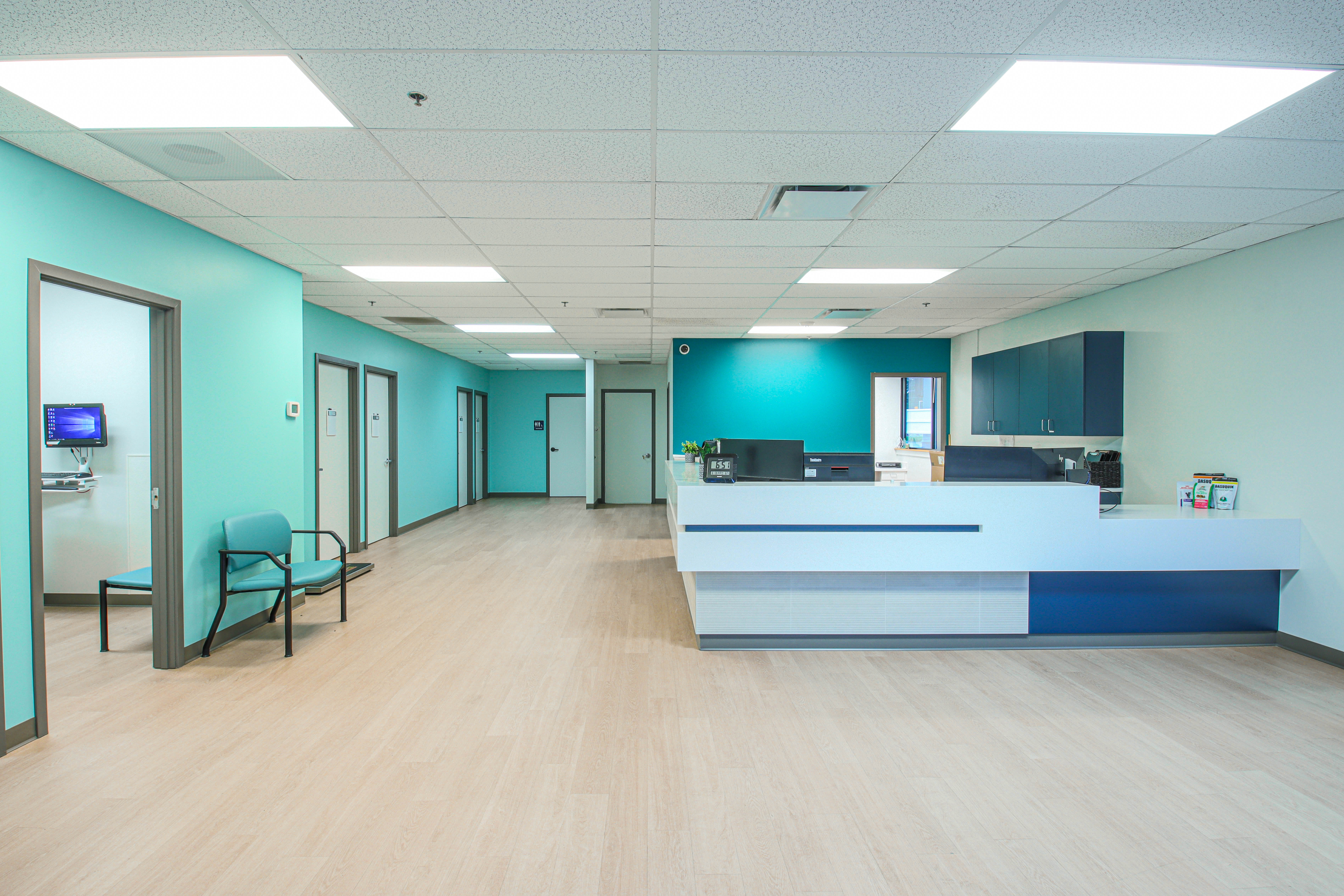 This project included a refresh of six existing exam rooms, the addition of a brand-new exam room, and a new manager’s office. The reception area was completely cleared out to make room for a new reception desk and a larger, more welcoming waiting area for clients.