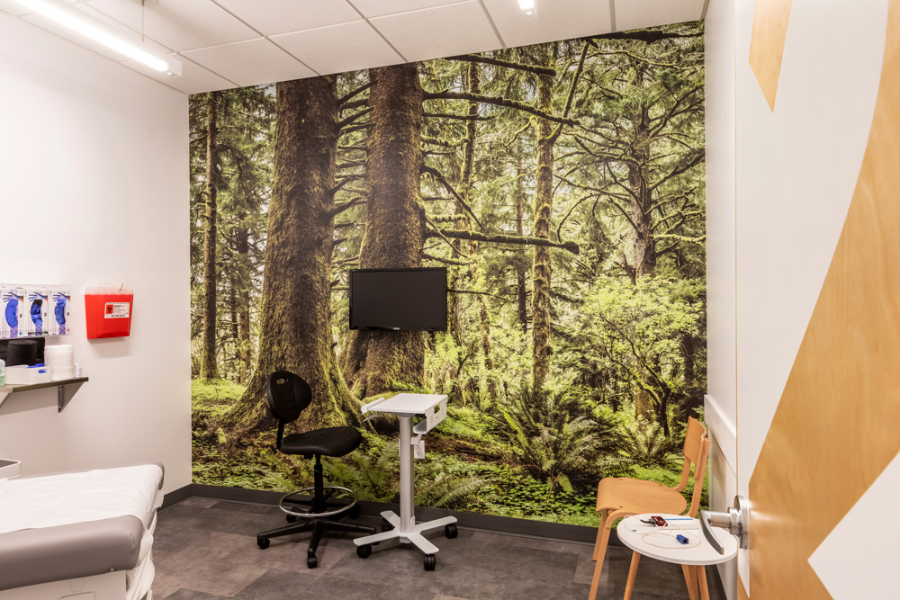 1725 SF new outpatient medical clinic including entry, lobby, restrooms, exam rooms, work room, pharmacy, and exterior improvements.